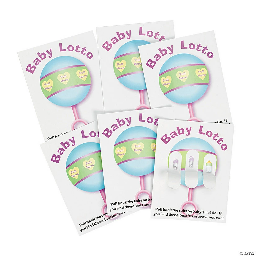 Baby Shower Pickle Cards. Need a fun activity for a girl’s or boy’s baby shower? Add some laughter and fun to your baby shower with these cardboard pickle cards! Ask your guests to pull back the tabs on babyโs rattle. If they find three bottles in a row, they win! Have a little fun with it โ use them for drawings, raffles, games, door prizes and more! Each 24-card deck comes with one winner. 5 1/2″ For entertainment purposes only. ยฉ OTC