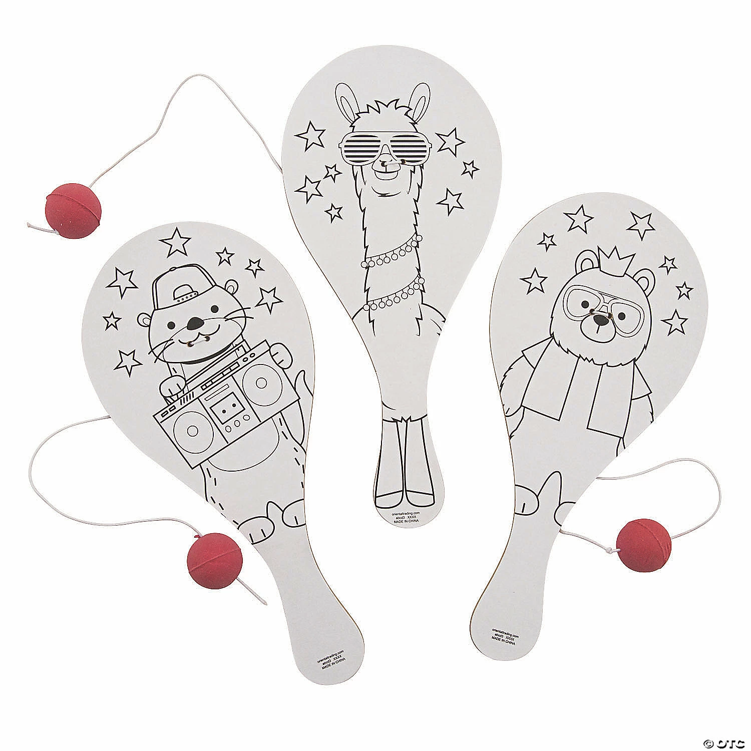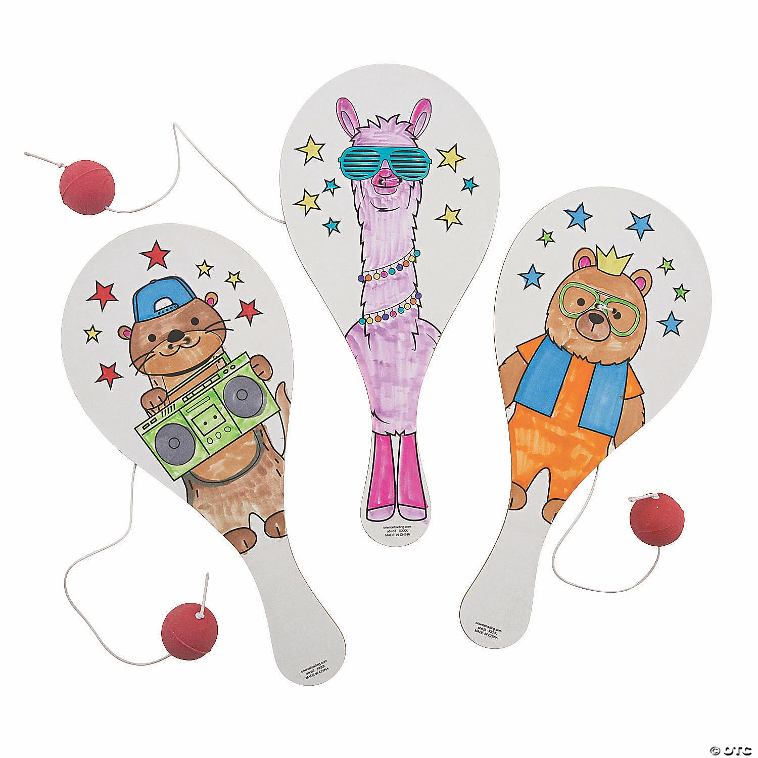 Outlet โค๏ธ Color Your Own Party Animal Paddleball Games – 12 Pc. ๐