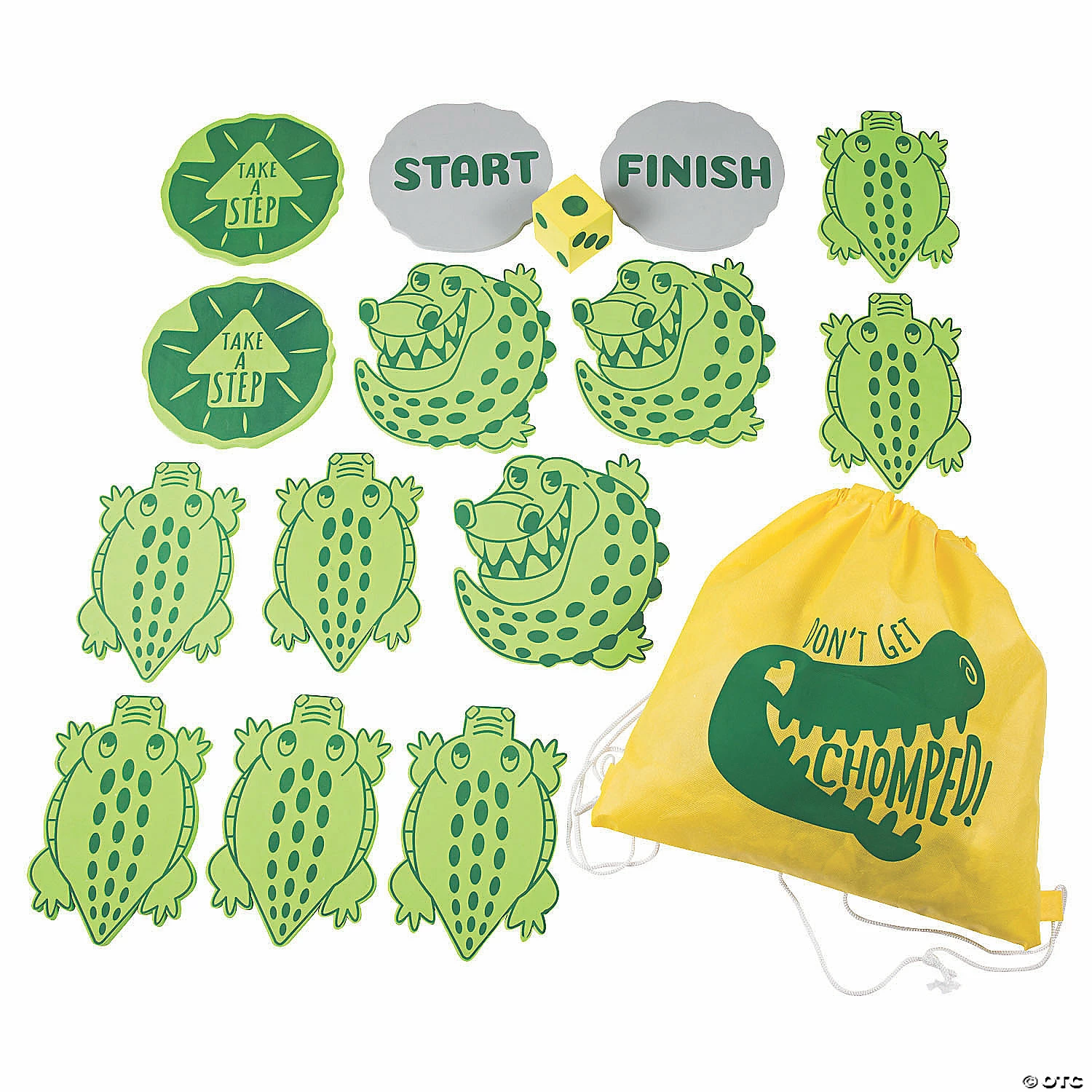 Race to the finish line—just be sure you don’t get chomped! A fun addition to party games, this exclusive activity is as easy to play as rolling the dice and moving from space to space. With adorable alligator designs, kids of every age will delight in playing, whether that’s done in the classroom or during a celebration. Avoid the chompy gators, befriend the safe ones and you’ll make it to the finish line in no time! Includes instructions, one 16″ x 15 1/2″ nonwoven polyester drawstring bag for storage, one foam dice and fourteen foam game pieces. (16 pcs. per set) © OTC