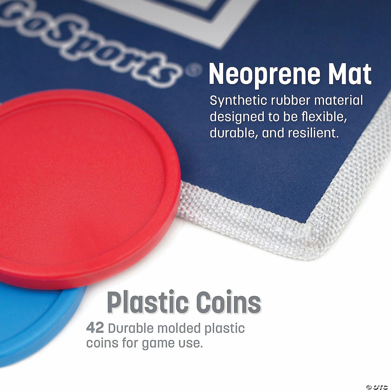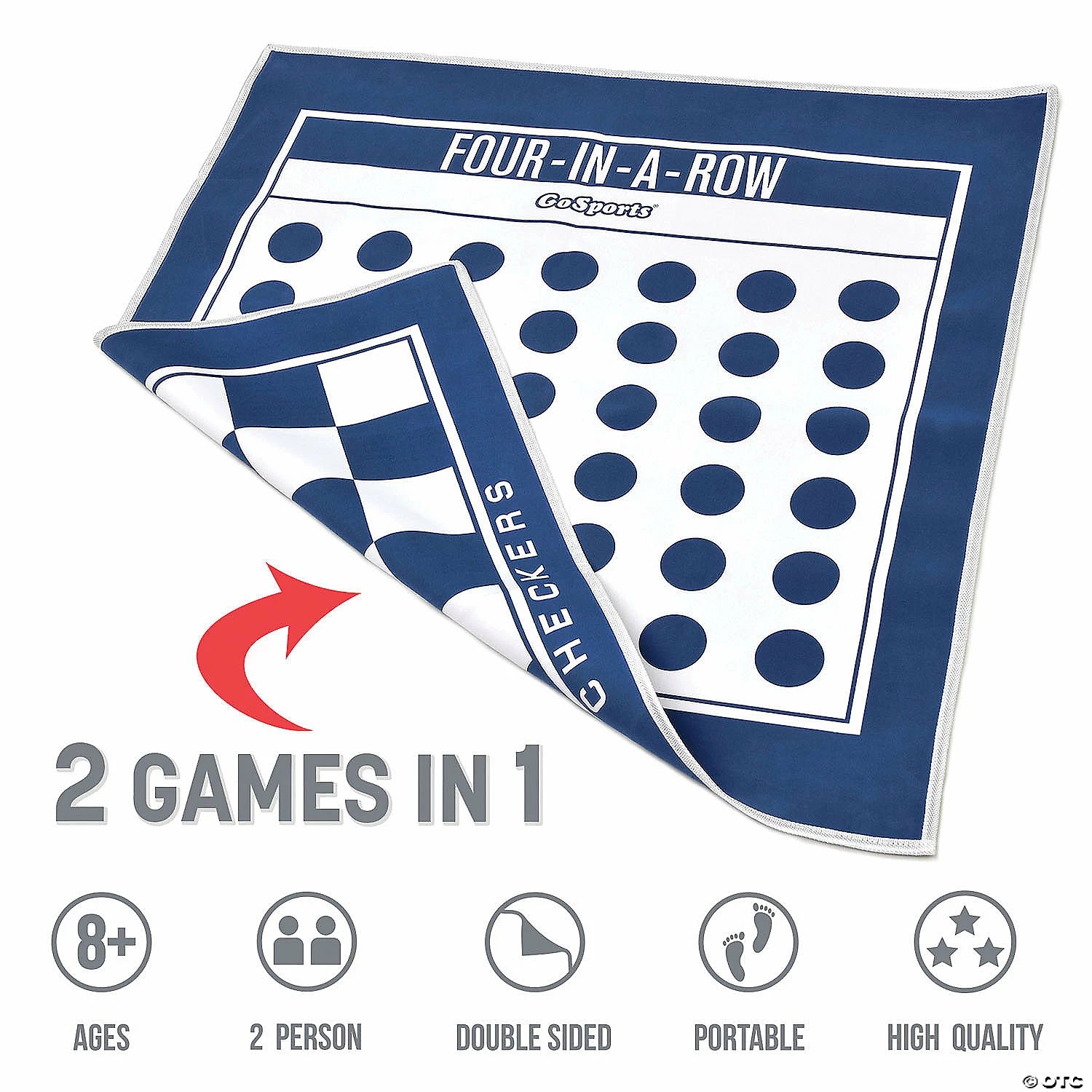 The GoSports giant 2-in-1 mat game combines 2 classic games into one compact board game. The mat rolls up to a very compact size, but rolls out to a huge 30″ x 30″ surface. The mat is made from durable neoprene that can be used indoors or outdoors on any surface. The front-side of the mat features giant checkers and the back-side features 4-in-a-row. 4-in-a-row is played by players taking turns placing coins into the 7 columns, starting on the bottom. A game is won when any one player gets 4 of their color coins in a row (vertically, horizontally or diagonally), so each player must always keep an eye on their opponent’s moves to try and block their 4 in a row. Detailed rules for both games are included with the set. The game is retail boxed and makes a great gift. Both games are great for ages 8+ and the giant mat is a great fun way to get kids unplugged and engaged in strategy games. Special Shipping Information: This item ships separately from other items in your order. This item cannot ship to a P.O. Box. This item may be subject to additional processing days. ITEM IS NOT ELIGIBLE FOR EXPEDITED SHIPPING