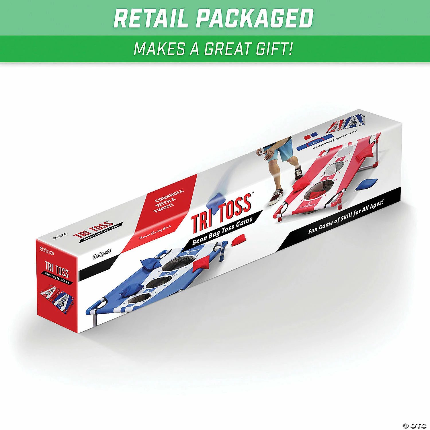 GoSports Tri Toss is inspired by traditional cornhole, but with an added twist. The unique bouncing surface and scoring holes reinvent this classic lawn game to bring a fun new playstyle! Assemble both targets in under a minute and gather 2 – 4 players for a round of bean bag tossing fun. Rack up points with multiple scoring holes to win and then switch up the fun with multiple ways to play (full rules included). Now step up and throw it back to classic fun with GoSports Tri Toss! Special Shipping Information: This item ships separately from other items in your order. This item cannot ship to a P.O. Box. This item may be subject to additional processing days. ITEM IS NOT ELIGIBLE FOR EXPEDITED SHIPPING