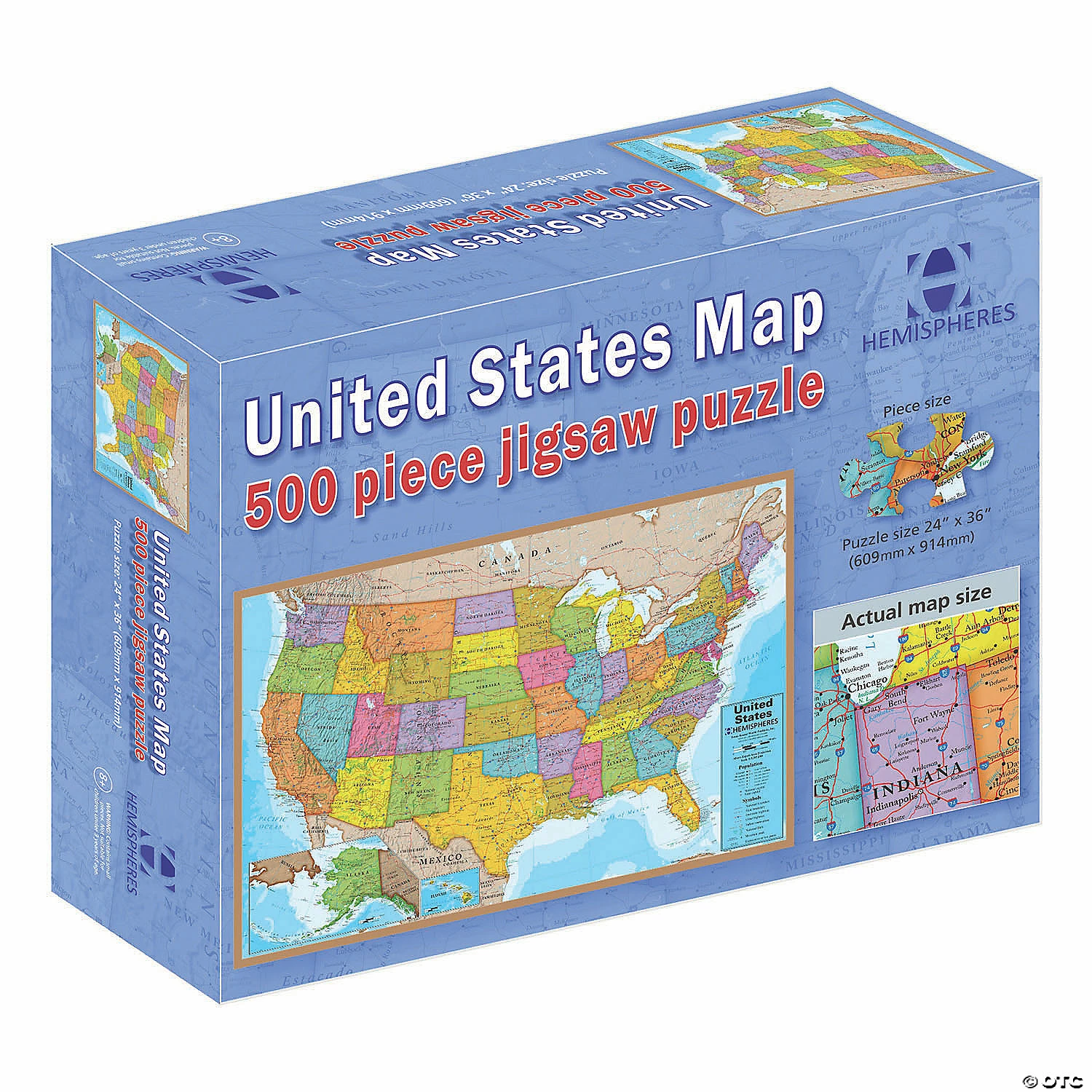 The 500 piece USA Puzzle is full of details of all 50 states. It is a fun family activity to colorful puzzle together. Comes in a sturdy box and measures 24″ x 36″. Ages 8+. Special Shipping Information: This item ships separately from other items in your order. This item cannot ship to a P.O. Box. This item may be subject to additional processing days. ITEM IS NOT ELIGIBLE FOR EXPEDITED SHIPPING