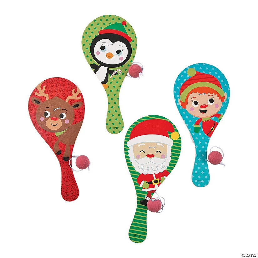 Classic toys with a dash of Christmas cheer! These paddleball games are guaranteed to keep the little ones busy all Christmas morning while you clear away the wrapping paper and relax. Put them in your yuletide goody bags or use them as quick and easy stocking stuffers! Wooden with a rubber ball. 4″ x 9″ ยฉย OTC