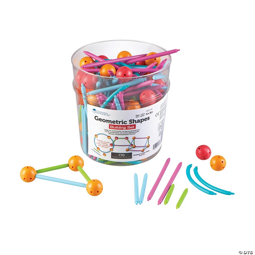 A smart addition to your math manipulatives and STEM education, this durable, quality set allows students to build 2D and 3D shapes through combining sticks of various sizes and shapes to connector pieces. Great as a fun hands-on math center activity, this set is an excellent teaching tool that will help students understand the basics of geometry through shape building and exploration. This set supports academic state standards in geometry. Includes 90 sticks, 32 curved sticks and 48 connector pieces. Plastic. (170 pcs. per set) 6 1/4″ x 6 1/2″ x 6 1/4″