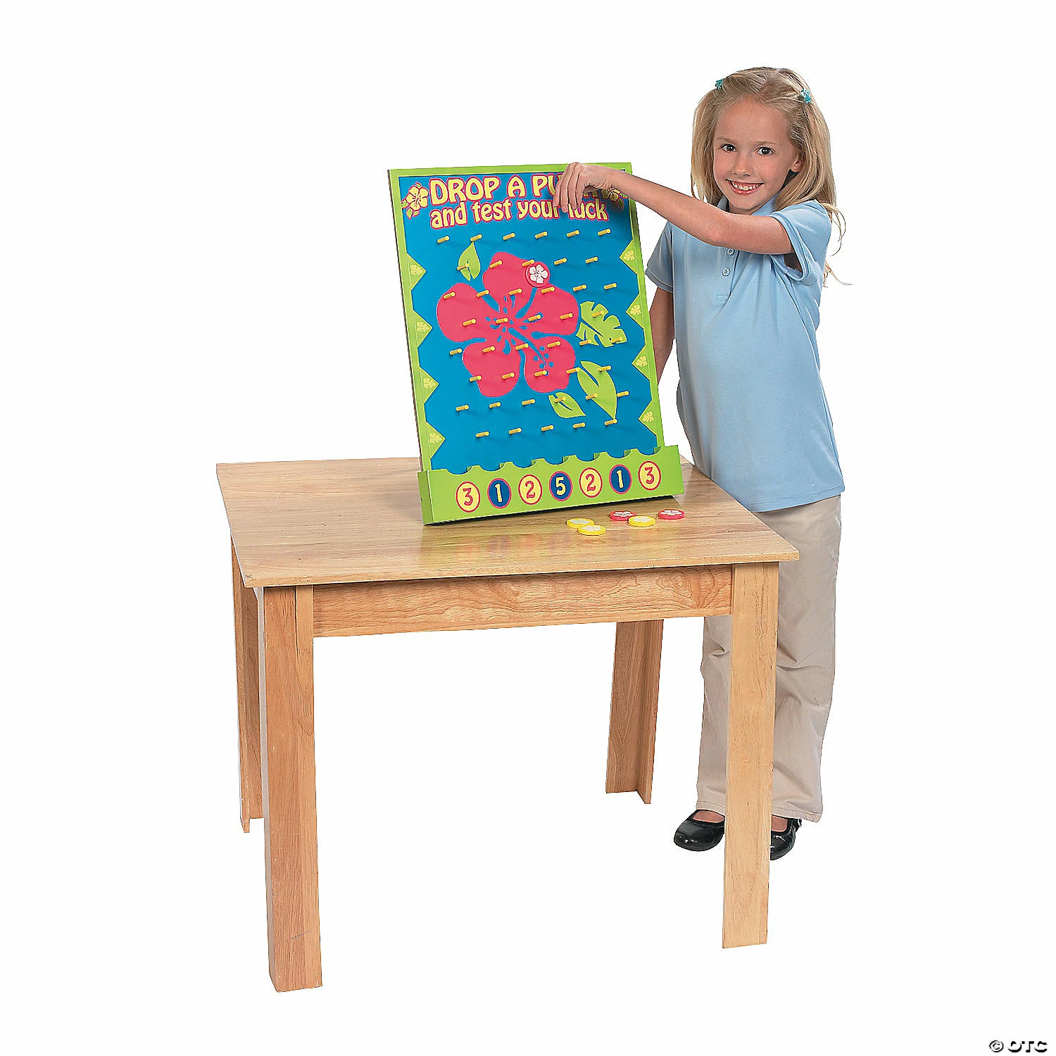 Your Luau and Hawaiian party supplies aren’t complete without beach party games. To score points in this Luau Disk Drop Game, place a disc flat on the board and just let it drop! This game is great for beach party ideas. The Luau theme of the board will easily match your other beach party decorations. Includes six 1 1/2″ diam. discs, a 16″ x 20″ gameboard and support pole. Wood. (8 pcs. per set) ยฉ OTC