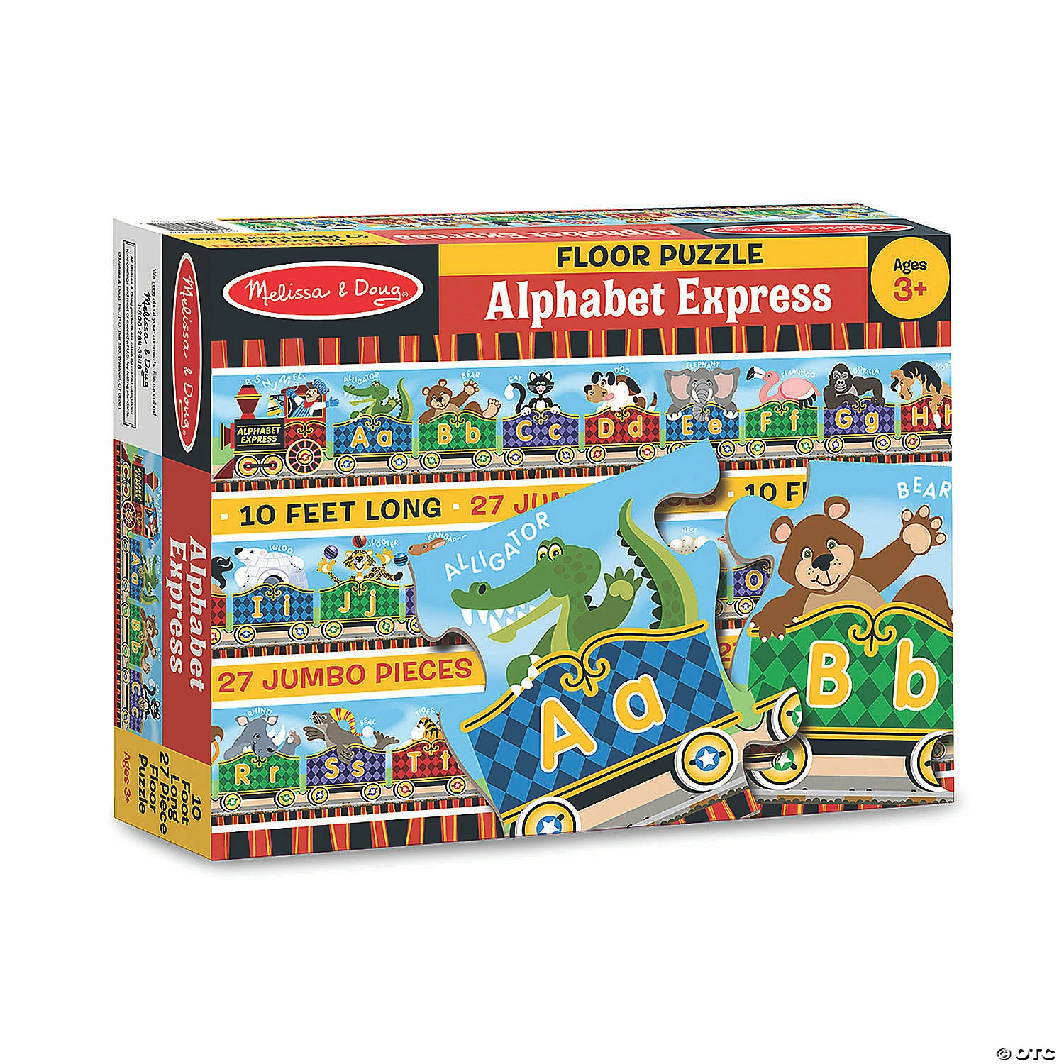 Climb aboard the Alphabet Express with twenty-six zany animals for letter and puzzle fun! Over ten feet long when complete, it features 27 extra-thick pieces that are 20% thicker than the competition’s. Its easy-clean surface keeps puzzle looking new.