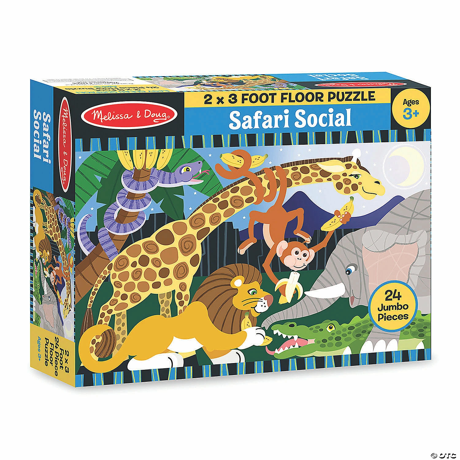A bunch of wild animals are having a party with a bunch of bananas in this wild animal cardboard floor jigsaw puzzle. 2′ x 3′ when complete, it features 24 extra-thick pieces that are 20% thicker than the competition’s. Its easy-clean surface keeps jigsaw puzzle looking new.