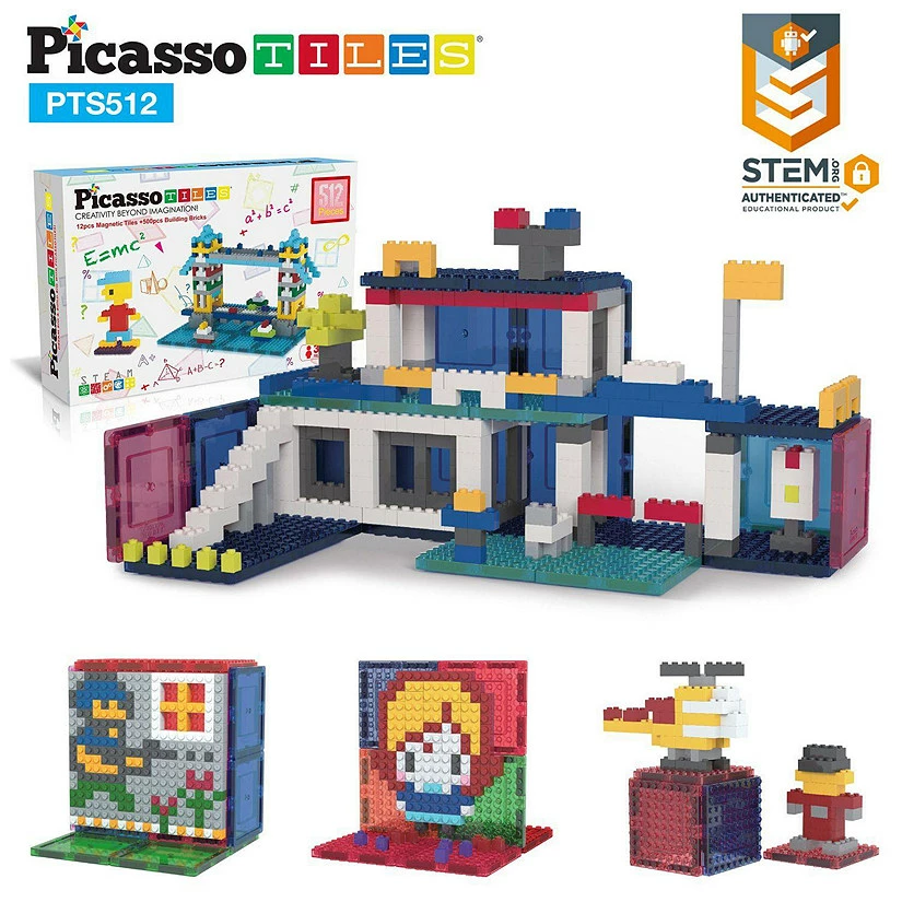 BRAND NEW DESIGNS:Β PicassoTiles has combined the world’s best two beloved construction toys to another whole new level! The 512pcs magnetic brick tile building set includesΒ 12 magnetic brick tiles and 500 small and big building bricks for more complex structures and creations