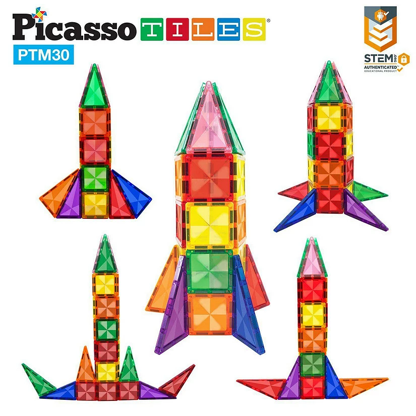 PicassoTiles 30 Piece Magnetic Building Blocks Mini Diamond Series Travel Size On-the-Go Magnet Construction Toy Set STEM Learning Kit Education Playset Child Brain Development Magnets Stacking Blocks PTM30