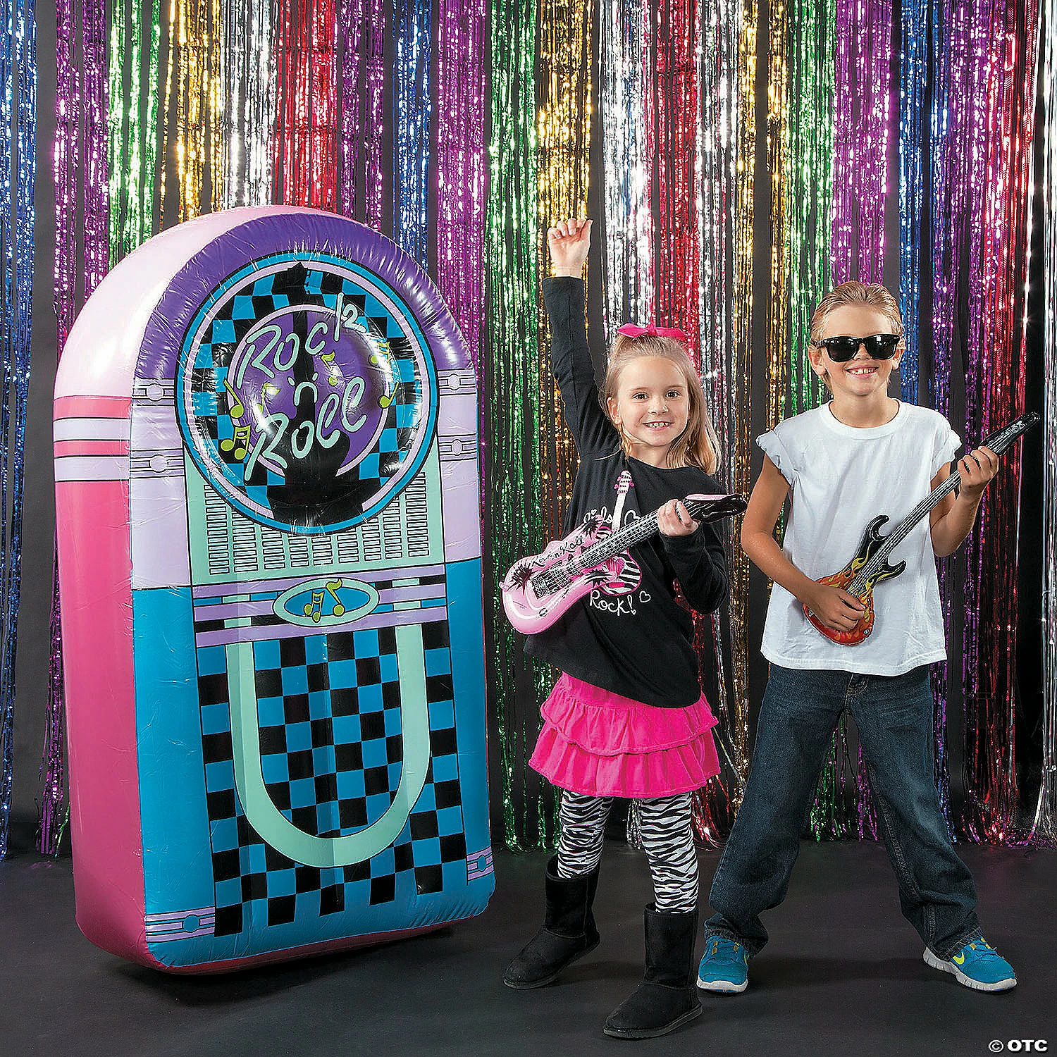 β’ What’s Included: This set includes 12 inflatable faux electric guitars.β’ Colorful Design: Ready to rock ‘n’ roll, these blow-up guitars come in enough colors that everyone can pick their favorite. Each is realistically detailed to look like an electric guitar. β’ Great for Kids: At 22β, theyβre perfectly sized for kids but rockers of all ages will want to pick up these mini air guitars and play. β’ Fun for Parties: These are a fun addition to your photo booth props, 50βs style rock ‘n’ roll parties or birthday party table decor.Product Description: Let’s rock! Inflate these 12 vinyl electric guitars to turn up the volume at any party. Use them to put on an air guitar contest or as take-home table decorations for birthday parties. They also make great photo booth props for wedding receptions and corporate events. Specs: Size: 22β Quantity: 12Material: Vinyl