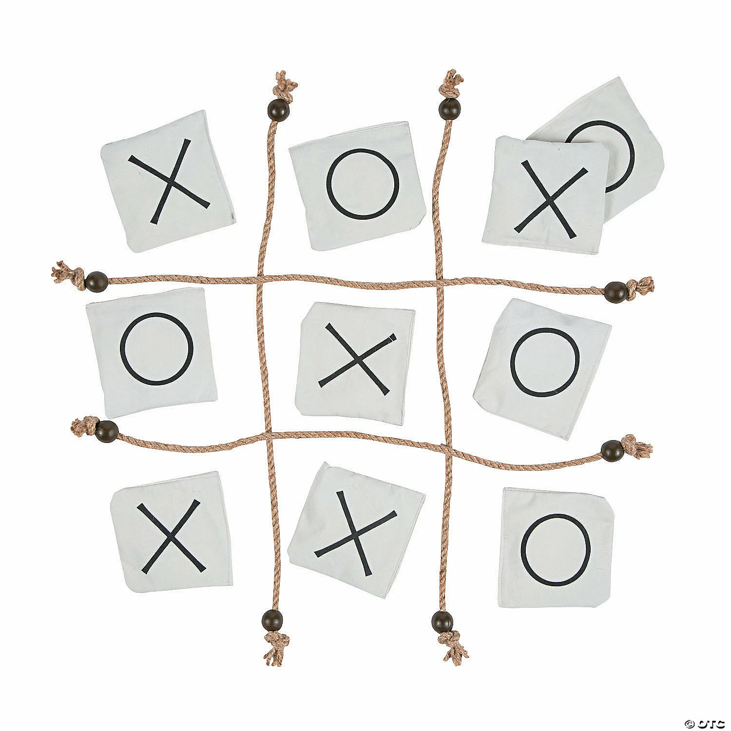 Set up this Tic-Tac-Toe Bean Bag Toss Game just about anywhere! Lay out the jute ropes in a hashtag pattern and try to toss your X bean bag or your O bean bag in just the right spot. Take this game set along on a road trip and pull it out when you stop to stretch your legs. This tic-tac-toe game set also is perfect as a wedding reception activity and at a family gathering or a picnic. Canvas. (14 pcs. per set) 10 bean bags, 4″ x 4″; four jute ropes, 20″ with 3/4″ wooden beads. ยฉย OTC