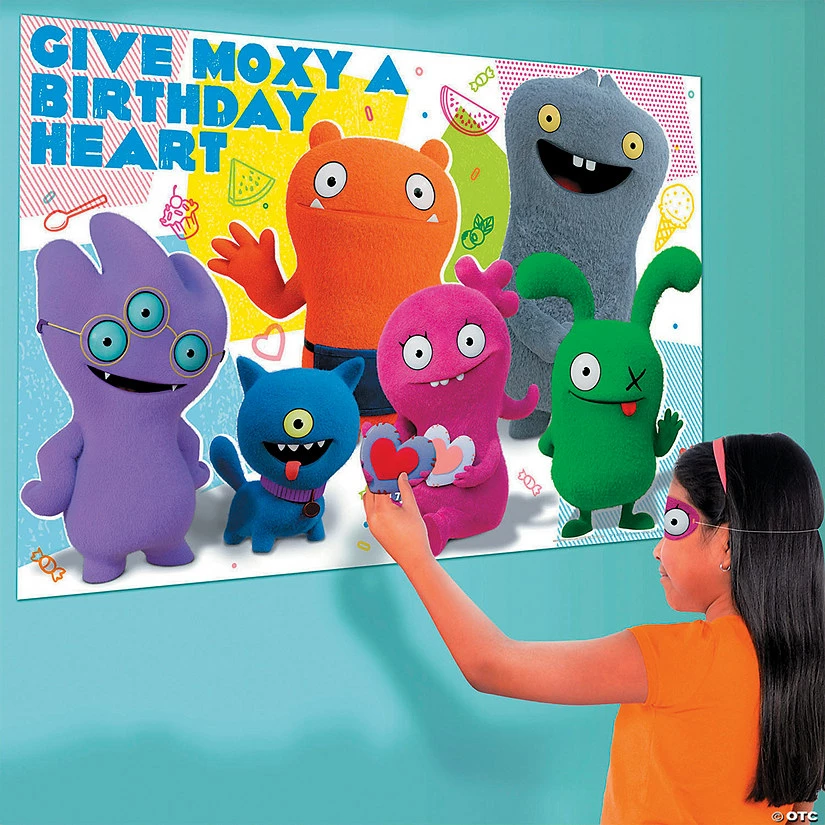 Get your game on at your UglyDolls birthday party with this fun game! A perfect addition to your party supplies, this game is a twist on the classic pin the tail on the donkey game. In this version, little partiers can stick a birthday heart on Moxy! Check out more UglyDolls party supplies elsewhere on this website. Includes game board, 8 heart stickers and 1 blindfold. Paper. (10 pcs. per unit) 37 1/2″ x 24 1/2″ โข & ยฉย Ugly Industries Holdings, LLC. All Rights Reserved.