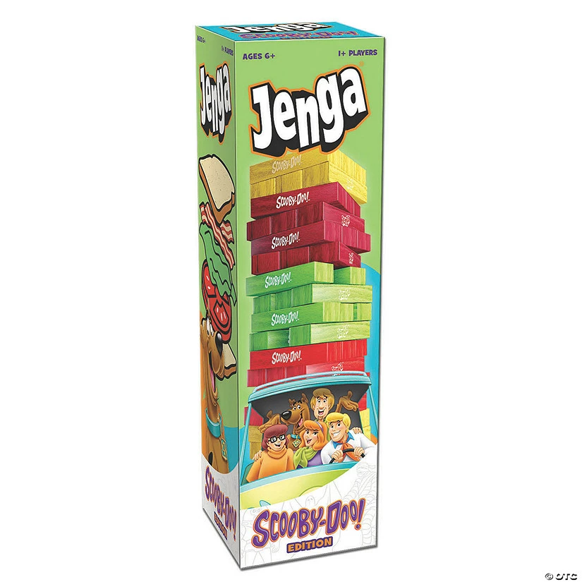Satisfy your craving for a fun and playful challenge with a version of JENGA inspired by your favorite mystery solvers! JENGA®: Scooby-Doo™ Edition takes these best friends’ appetites to new heights as players carefully remove and replace ingredients of the tallest BLT ever! Pull tomatoes, lettuce, and bacon according to the roll of the die and set up the next turn for a taste of victory… or toppling defeat! For 1 or more players, ages 6+. Contents include: 54 Scooby-Doo Edition JENGA Blocks (12 “Bread”, 15 “Bacon”, 15 “Lettuce”, 12 “Tomato”), 1 Custom Scooby-Doo JENGA Die, 1 Loading Tray and Rules. Special Shipping Information: This item ships separately from other items in your order. This item cannot ship to a P.O. Box. This item may be subject to additional processing days. ITEM IS NOT ELIGIBLE FOR EXPEDITED SHIPPING You may initiate a return for unused items within 30 days, if the items are in original packaging with all original materials included with the shipment.