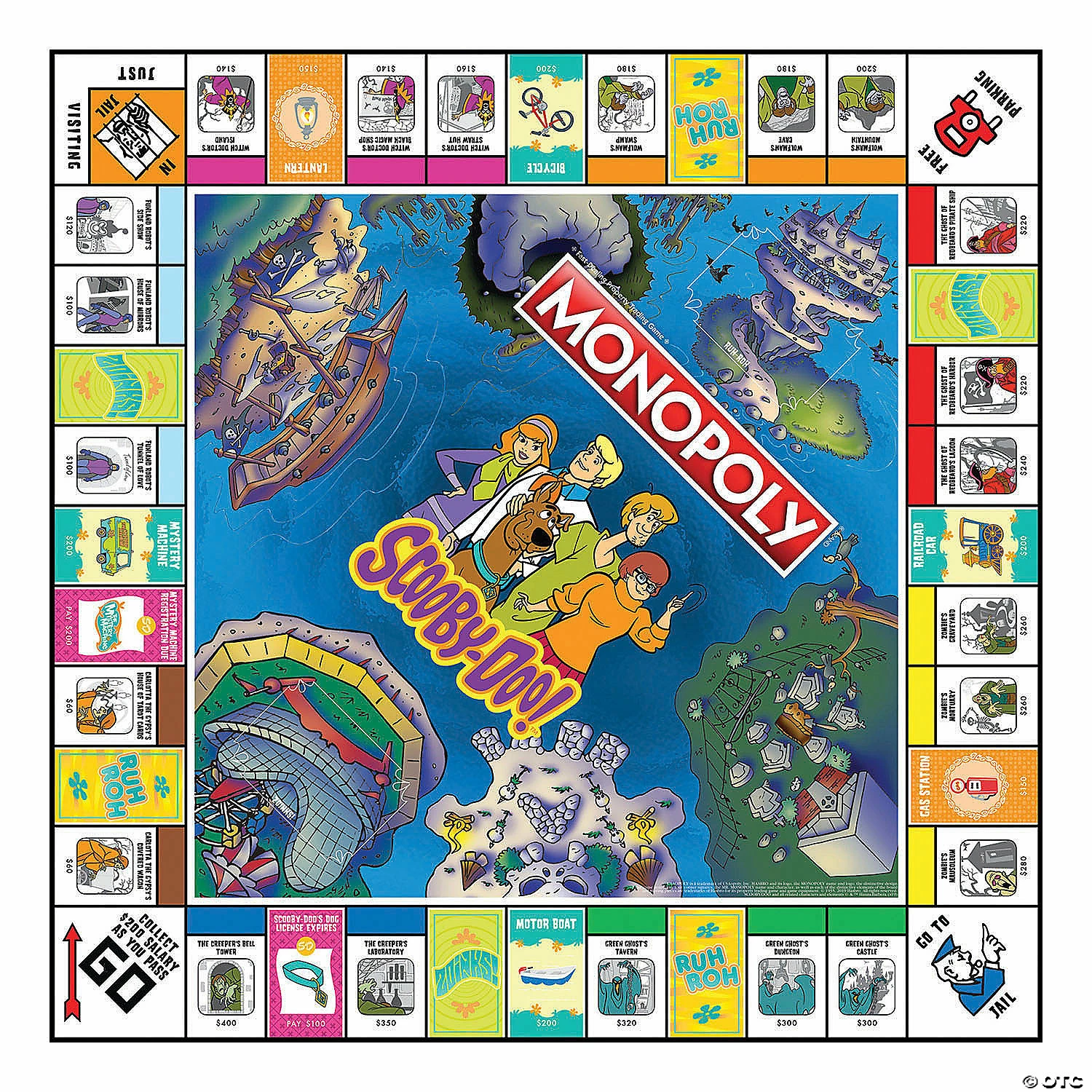MONOPOLY®: Scooby-Doo. Join Scooby-Doo and the gang as you buy, sell and trade monstrous locations from Scooby’s world. Adventure through 22 suspicious locations in this commemorative version of Monopoly celebrating 50 years of the mystery-solving animated series! For 2-6 players, ages 8+.What’s Included:• Game board featuring monstrous locations• 6 Custom tokens: Scooby-Doo™, Velma™, Shaggy™, Daphne™, Fred™ and Mystery Machine• Houses and hotels renamed Snack Shacks and Dine & Dash Diners• Community Chest & Chance cards renamed Ruh-Roh and Zoinks!• Custom Scooby-Doo money• Rules Special Shipping Information: This item ships separately from other items in your order. This item cannot ship to a P.O. Box. This item may be subject to additional processing days. ITEM IS NOT ELIGIBLE FOR EXPEDITED SHIPPING