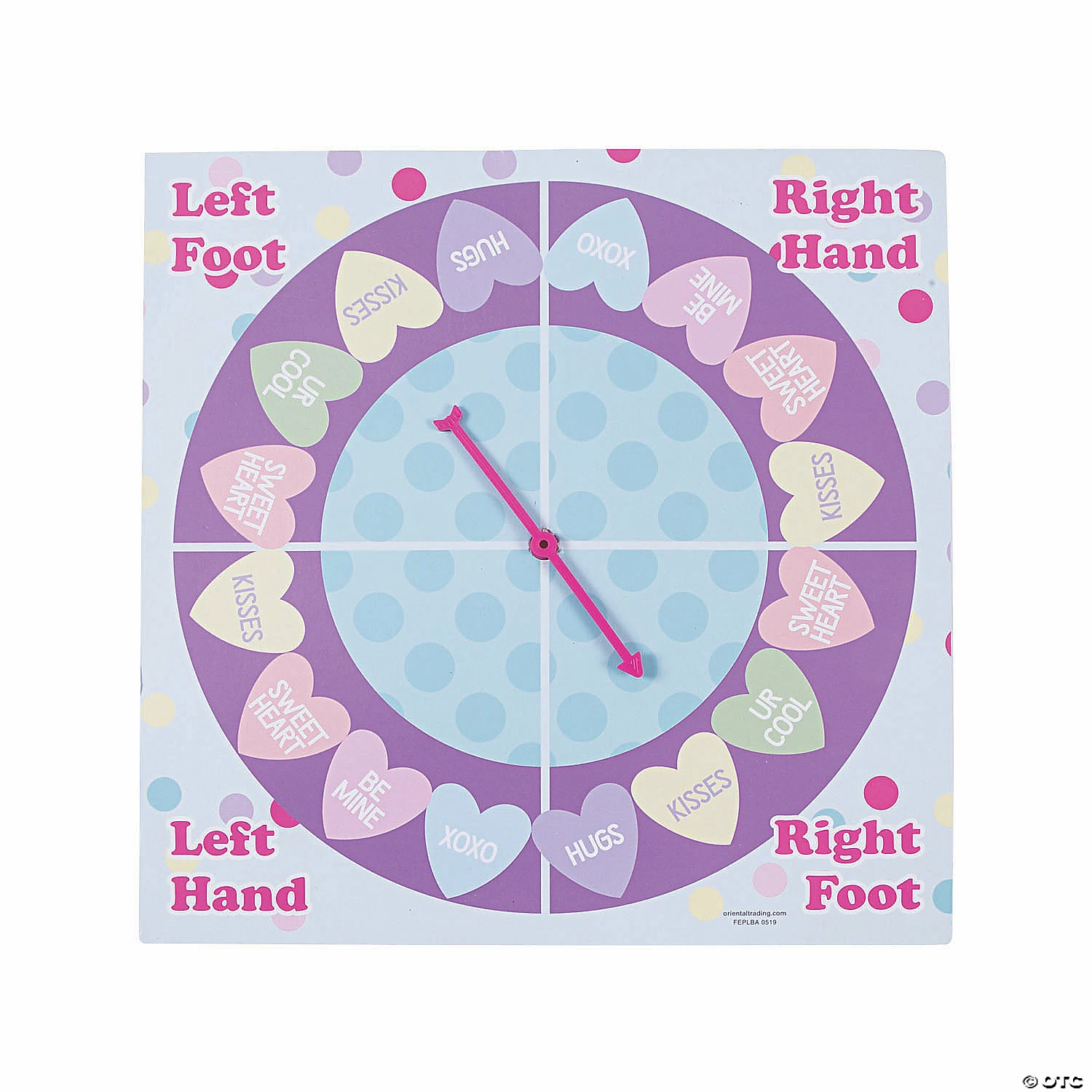 Are you looking for a fun activity for kids to do during a sweetheart soirΓ©e? Look no further! The perfect addition to Valentineβs Day party games, just place your hands and feet where the spinner directs you to see who can bend the best. Printed with bright colors and an assortment of conversation hearts, kids will have a riot playing this game! Includes 60″ x 6 ft. vinyl game mat with 12″ cardboard spinner. (2 pcs. per set)