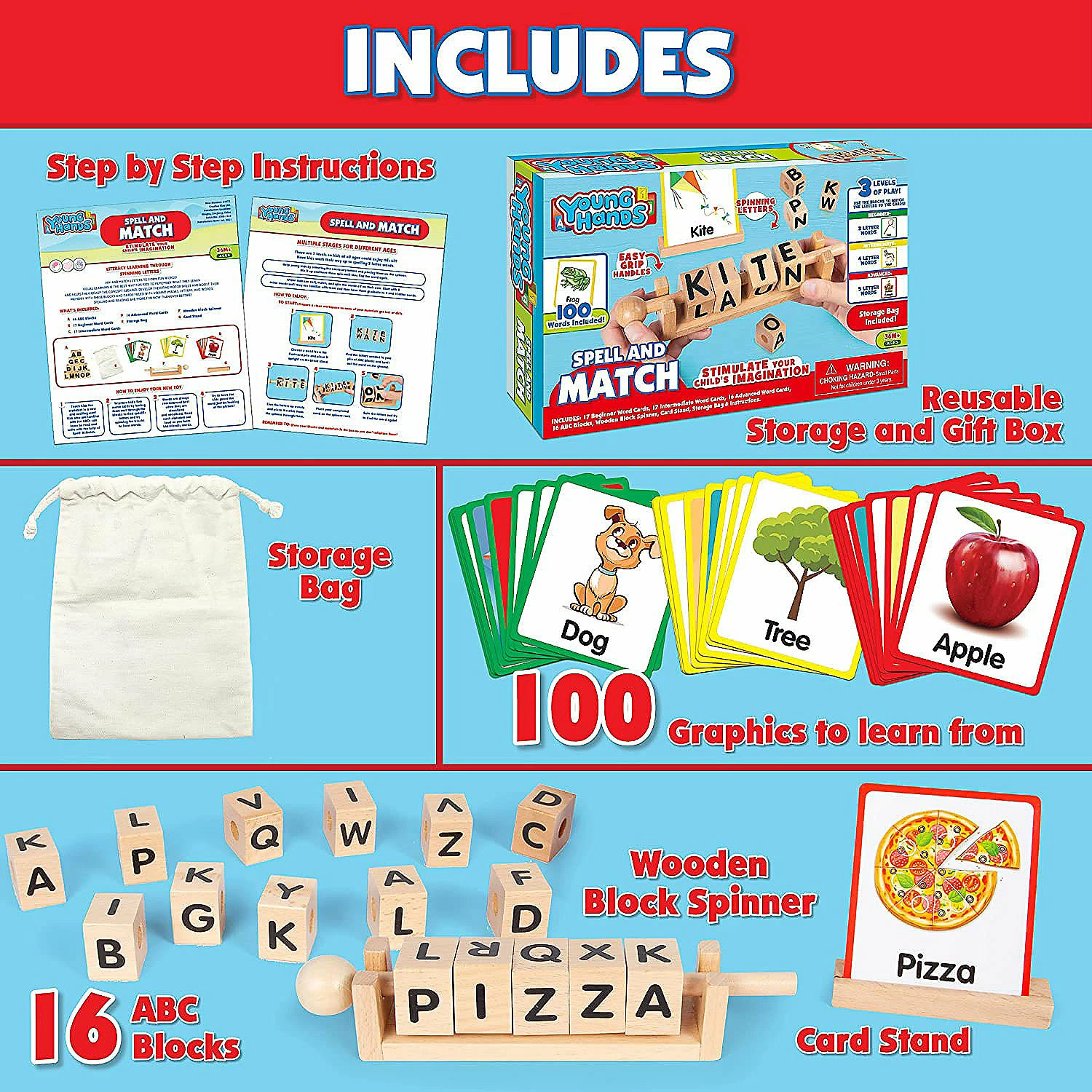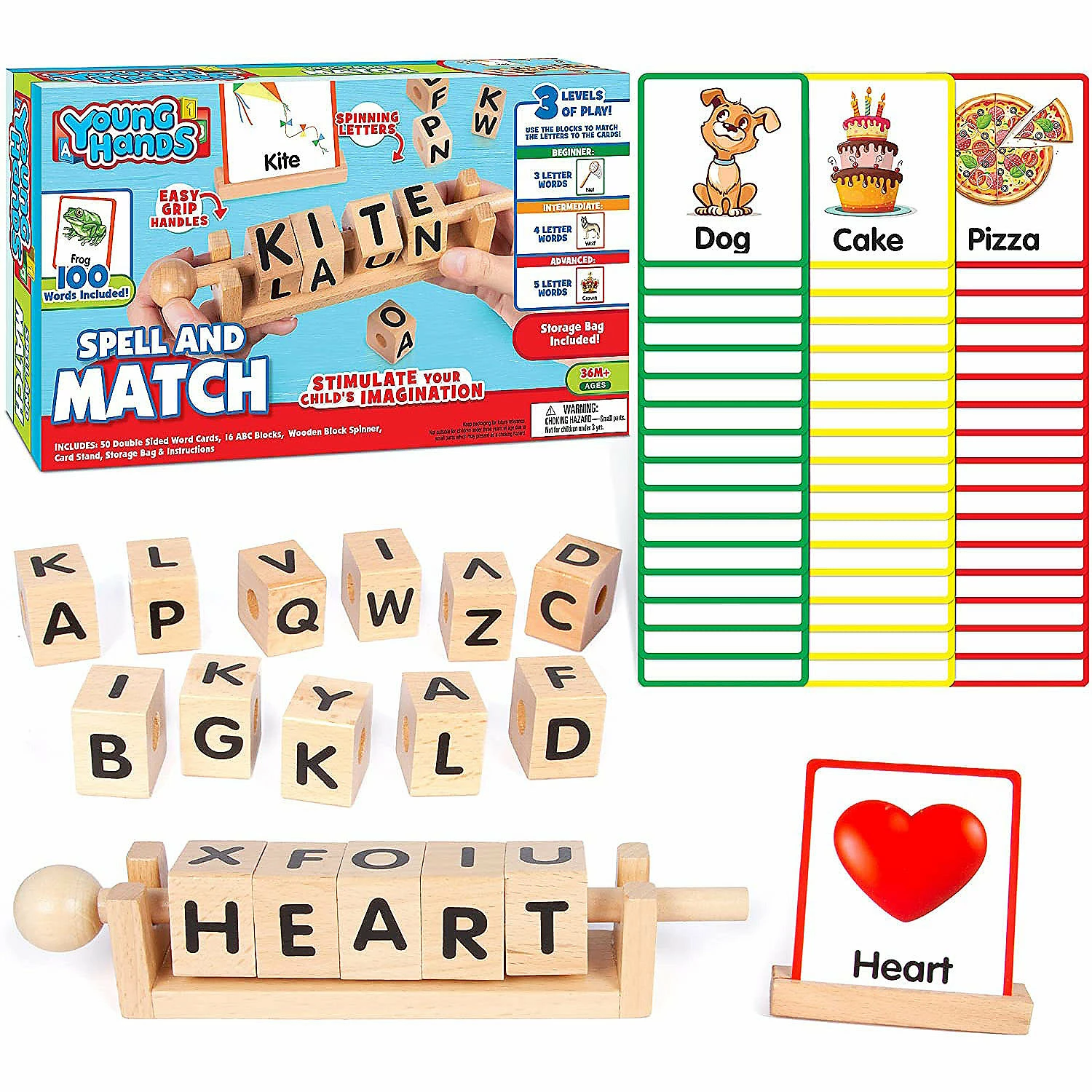 Discount π― Young Hands Wooden Reading Blocks – Spin, Spell & Match Words Age 3+ π